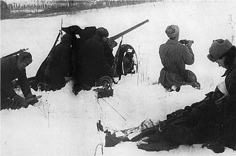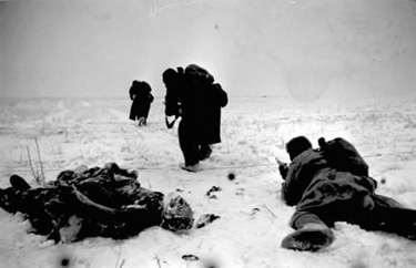 Бойцы выдвигаются на новый огневой рубеж в районе окруженной сталинградской группировки немцев