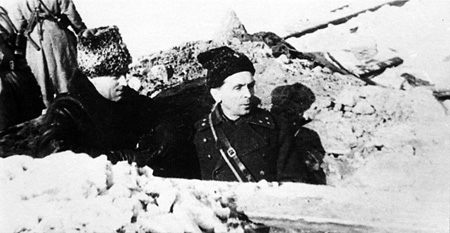 Командующий Донским фронтом генерал-лейтенант Константин Константинович Рокоссовский (слева) на передовых позициях. Рядом с ним командующий 65-й армией генерал-лейтенант Павел Иванович Батов (22 октября 1942 года 4-я танковая армия была реорганизована в 65-ю армию)