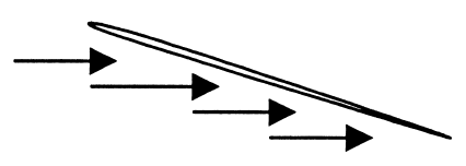 Самолеты летают по воздуху. Воздушные шары, наполненные легким газом, плавают в воздухе – как поплавок в воде. Парашюты и осенние листья медленно опускаются на землю, опираясь на воздух. А самолеты непрерывно «наезжают» на воздух своими крыльями, установленными под небольшим углом к вектору скорости воздушного потока. Этот угол в аэродинамике называется «угол атаки» – выражение, очень любимое журналистами. Нам же с Вами важно понять и запомнить, что «угол атаки» – это вовсе не угол наклона траектории полета по отношению к горизонту (т. е. не угол пикирования или кабрирования), а угол наклона крыла к невидимому и абстрактному «вектору скорости потока». (См. рис. 1)