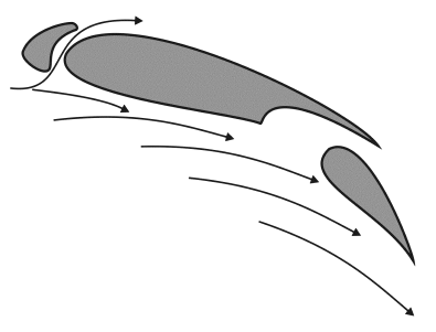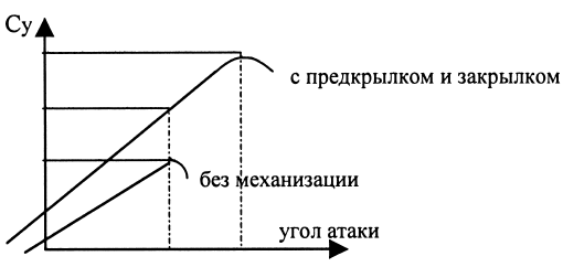 Эти устройства позволяли кратковременно (на момент взлета-посадки) увеличить кривизну профиля крыла, увеличить площадь крыла (выдвижные закрылки) и максимально допустимый по условиям срыва потока угол атаки (этот эффект обеспечивают предкрылки). (См. рис. 4)