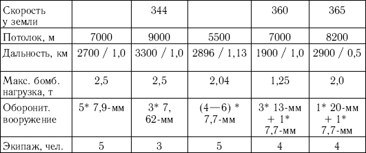 Прежде чем перейти к таблице с техническими параметрами, необходимо дать еще одно пояснение по поводу используемых терминов. Самолет – штука сложная, и все в нем многозначно. В смысле – каждый параметр имеет множество значений. Для бомбардировщика актуальны по меньшей мере пять скоростей (взлетная, крейсерская, максимальная, у земли, на максимальной высоте), три «дальности» (с максимальной бомбовой нагрузкой, с номинальной бомбовой нагрузкой, без нагрузки и вооружения – т. н. «перегоночная дальность»), пять «бомбовых нагрузок» (при максимальной и минимальной дальностях полета, на внешней и на внутренней подвеске, максимальный единичный вес бомбы), три «мощности двигателя» (взлетная, крейсерская, на режиме полета с максимальной скоростью).