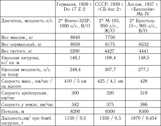 «Мессершмитт» 1939 года («Bf-109» El) развивал максимальную скорость 548 км/час на высоте 4,5 км и 462 км/час у земли. Другими словами – превосходил в скорости «СБ» и «Бленхейм» на 120—90 км/час во всем диапазоне высот реального боевого применения. Ничуть не лучшими были шансы на спасение и у немецкого «скоростного» бомбардировщика «Do-17 Z». Английский «Спитфайр» Мк-1 (скорость у земли 470 км/час, максимальная на высоте 5,5 км – 582 км/час) также обгонял «Дорнье» на 150–120 км/час. Чуда не случилось. После того как конструкторы истребителей пошли на значительное увеличение удельной нагрузки на крыло у своих новых самолетов, сама идея легкого бомбардировщика, способного обогнать истребитель, безнадежно умерла.