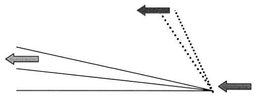 Отклонение элерона вниз приводит к увеличению кривизны профиля крыла, давление воздуха под крылом возрастает, и в результате появляется дополнительная подъемная сила, направленная вверх (см. рис. 11). На другом крыле в это время происходит все то же самое, только наоборот (элерон отклоняется вверх, давление под крылом уменьшается, над крылом – повышается, в результате появляется дополнительная аэродинамическая сила, направленная вниз). Самолет накреняется и входит в вираж. Но крыло – это тонкая пластина, отнюдь не «бесконечной жесткости». Под воздействием аэродинамической силы, «поднимающей» элерон, крыло начинает закручиваться, а угол атаки (угол между вектором скорости воздушного потока и крылом) – уменьшаться, (см. рис. 12). В результате этого сложного взаимодействия эффективность элеронов на больших скоростях полета начинает уменьшаться до нуля, а затем и вовсе наступает так называемый «реверс элеронов» – элерон отклоняется вниз, а подъемная сила крыла не только не возрастает, а наоборот – падает! При этом самолет начинает крениться не в ту сторону, куда хочет накренить его летчик (правда, практически до такого состояния дело не доходит, и процесс завершается на этапе полной потери поперечной управляемости самолета).