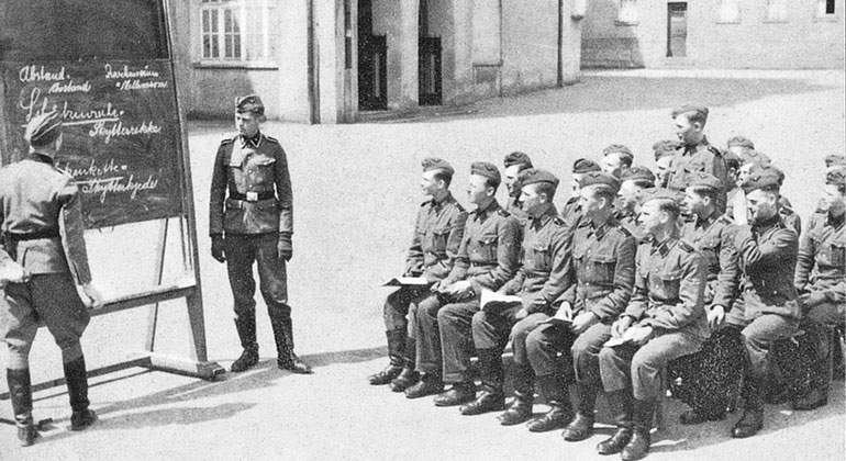 Офицерское училище СС в Бад-Тёльце. К кандидатам-иностранцам здесь относились точно так же, как и к немцам. Датчанин Эрик Брёруп, служивший в дивизии «Викинг», вспоминал: «Меня никогда не унижали и не относились ко мне предвзято только потому, что я датчанин»