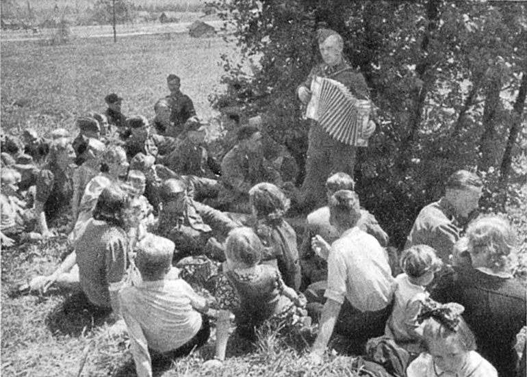 Стать военнослужащим войск СС отнюдь не означало бесконечно нести тяготы войны. Этот снимок взят из пропагандистской брошюры для французских добровольцев. Может возникнуть вопрос – скольким иностранным добровольцам предоставлялся отпуск прежде, чем их перебрасывали на фронт в Россию