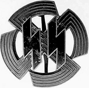 Значок, появившийся по приказу Гиммлера, назывался «Германские руны СС». Он представлял собой две руны СС на фоне вращающейся свастики. Это был знак дивизии «Викинг», а позднее – III германского танкового корпуса СС (состоявшего главным образом из добровольцев из стран Северной Европы). Значок имел две степени – бронзовую и серебряную (последняя – высшая по значимости). Носился посередине левого нагрудного кармана формы.