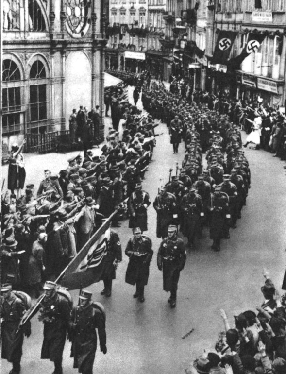 1938 г. Судетский легион демонстрирует свою силу после присоединения Судетской области к Германии