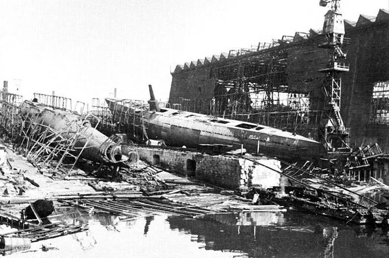 Корпуса недостроенных и подорванных подлодок типа «С» на заводе им. Марти в Николаеве