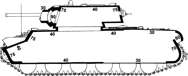 Броневая защита танка была противоснарядной и изготавливалась из гомогенной броневой стали. Башня и корпус сваривались из броневых листов толщиной 75 мм. Крыша имела броню толщиной 30 мм, а днище – 30–40 мм.