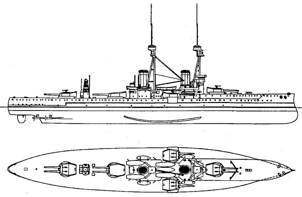 Впереди шли британские дредноуты «Суперб» и «Темерер», за ними – французский дредноут “Джастис” («Justice») и итальянский «Леонардо да Винчи», крейсера «Галатея», «Агордат» и девять эсминцев.