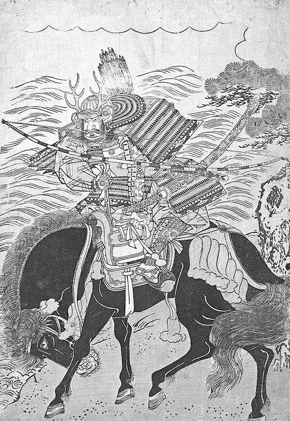 Самурай в доспехах о-ёрой верхом на черном коне. Ксилография Китао Сигемаси (1739–1820). Музей искусств Лос-Анджелеса.