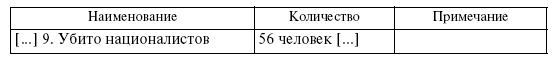 […] С 24.VII по 25.VII. Бой с украинскими националистами. Было предложено о сдаче или переходе на сторону красных партизан, но националисты отказались от этого предложения и завязался бой. В результате боя один укр. националист был убит и 2 ранено7. Участвовали в этом бою: 1) Каманин Михаил, 2) Ястреб Василий, 3) Дмитриенко Николай, 4) Панебратенко И., 5) Тучков Николай, 6) Лазерев Иван, 7) Кириллов Яков, 8) Горлач Владимир, 9) Харитонов Алексей, 10) Андрюхин Алексей, 11) Найфельд Иван, 12) Ермаков Николай, 13) Челомбитько Юрий, 14) Качалин Иван, 15) Еремчук Петр, 16) Любиев Степ[ан], 17) Ордошевский Макс., 18) Гречкин Николай, 19) Данилов Иван.