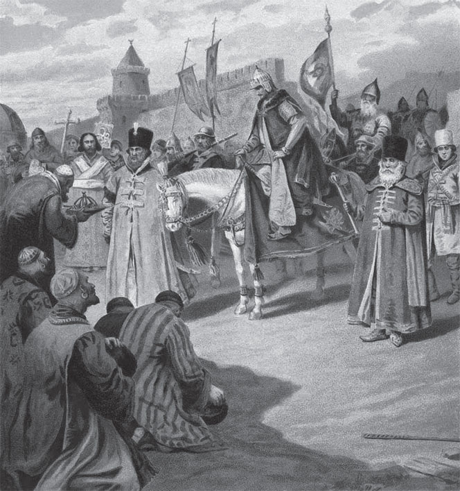 Накануне общего штурма окруженной со всех сторон Казани, 1 октября 1552 года, русское командование направило в город парламентера – мурзу Камая – с последним предложением покориться Москве.[38] Оно было отвергнуто – казанцы решили защищаться до конца, ответив: «Не бьем челом! На стенах и на башне Русь, мы иную стену поставим, да все помрем или отсидимся».
