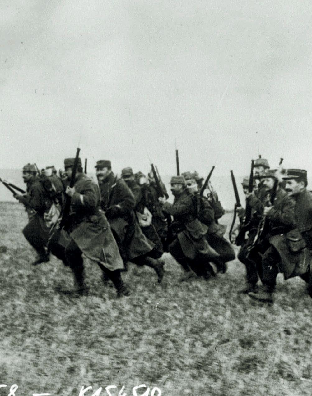 Французские пехотинцы в штыковой атаке в начале мировой войны (Фотография из коллекции Национальной библиотеки Франции)