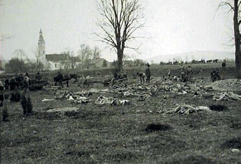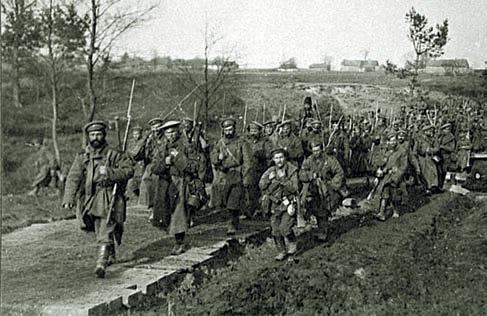 Русские солдаты специальных частей за уборкой трупов с поля боя у деревни Блони. Польша, октябрь 1914 г.
