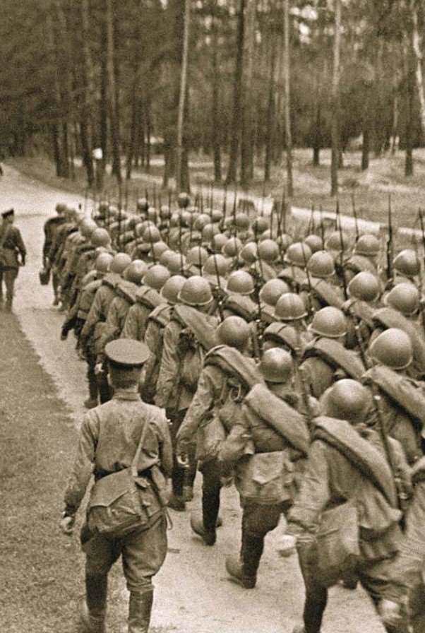 Колонна бойцов Красной Армии на марше