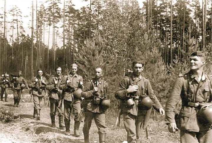 Пехотинцы элитного подразделения Вермахта – моторизованного пехотного полка «Великая Германия» – на марше. Белоруссия, июль 1941 г.