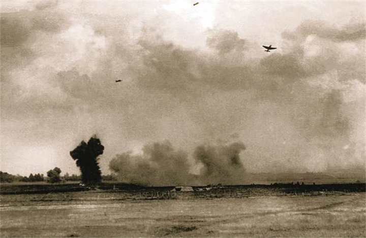 Удар немецких пикирующих бомбардировщиков «Юнкерс» Ю-87 по советским позициям в районе деревни Волочек под Лугой. 14 августа 1941 г.