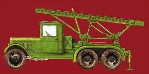 БМ-13 – наиболее массовая и знаменитая советская боевая машина реактивной артиллерии периода Великой Отечественной войны, известная под народным прозвищем «катюша». Первые две пусковые установки БМ-13 на шасси машин ЗиС были изготовлены 27 июня 1941 г. на заводе имени Коминтерна в Воронеже. Сама установка представляла собой металлическую ферму, на которой смонтирован пакет из восьми пятиметровых стальных двутавровых балок. Для облегчения боевой установки по всей длине каждой балки были высверлены круглые отверстия. Ферма с пакетом направляющих прочно соединялась с поворотной рамой. Установка имела простейшей конструкции поворотный и подъемный механизмы, кронштейн для прицела с обычной артиллерийской панорамой, железный бак для горючего, прикрепленный сзади кабины. На задней части шасси были смонтированы два откидных домкрата. Стекла кабины во время стрельбы закрывались броневыми откидными щитами. Против сиденья командира боевой машины на передней панели был укреплен небольшой прямоугольный ящичек с вертушкой, напоминающей диск телефонного аппарата, и рукояткой для проворачивания диска, на котором имелось 16 номеров. Это приспособление называлось пультом управления огнем – ПУО. От него шел жгут проводников к специальному аккумулятору и к каждой направляющей. При одном обороте рукоятки ПУО происходило замыкание электроцепи, срабатывал пиропатрон, помещенный в передней части ракетной камеры снаряда, воспламенялся реактивный заряд и происходил выстрел. Темп стрельбы определялся темпом вращения рукоятки ПУО. 16 тяжелых реактивных снарядов из БМ-13 могли быть выпущены за 8-10 секунд и буквально перепахать территорию в районе цели. При этом оглушительный вой, которым сопровождался полет ракет, буквально сводил людей с ума. Соотечественники Баха даже прозвали советские реактивные установки «сталинскими органами». Те из немецких солдат, кто не погибал во время обстрела, часто уже не могли оказывать сопротивление, поскольку были контужены, оглушены и совершенно подавлены психологически. В свою очередь мобильность установки БМ-13 позволяла советскому расчету быстро уйти на другую позицию, избежав ответного удара противника.