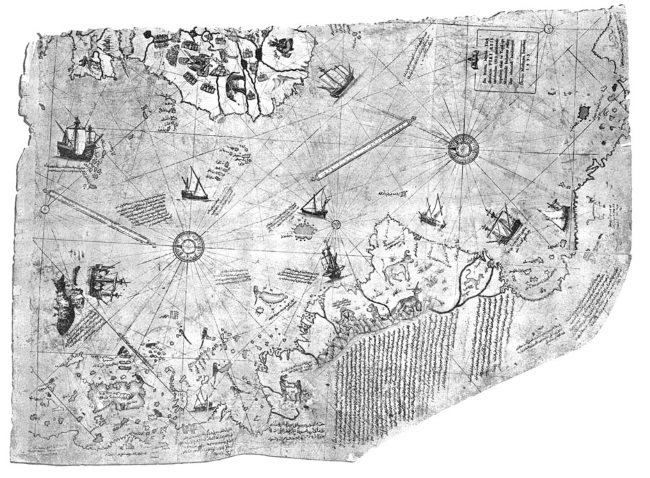 Карта Хаджи Мухиддина, составленная в 1513 году, с подробной береговой линией Антарктиды