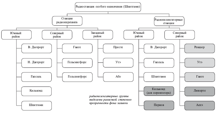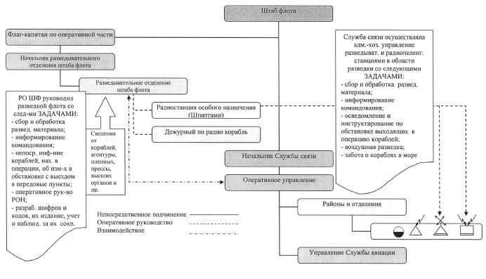 И все же, несмотря на развитие организации разведывательной деятельности на Балтике, определенный параллелизм в части радиоразведки сохранился. Принятая с этого момента организация разведки на театре схематично показана на рис. 4.