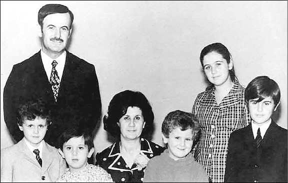 Семья Асадов в 1970 году. Слева направо: Башар, Хафез Асад, Махер, Аниса Махлуф (мать), Маджид, Бушра и Басиль [32]