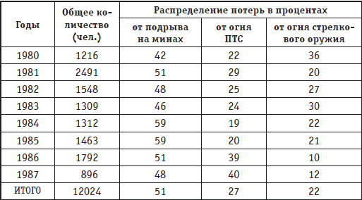 БЕЗВОЗВРАТНЫЕ ПОТЕРИ ВООРУЖЕНИЯ И ТЕХНИКИ ОКСВ ЗА 1980–1987 гг.