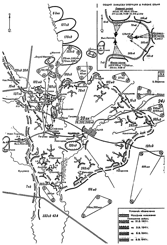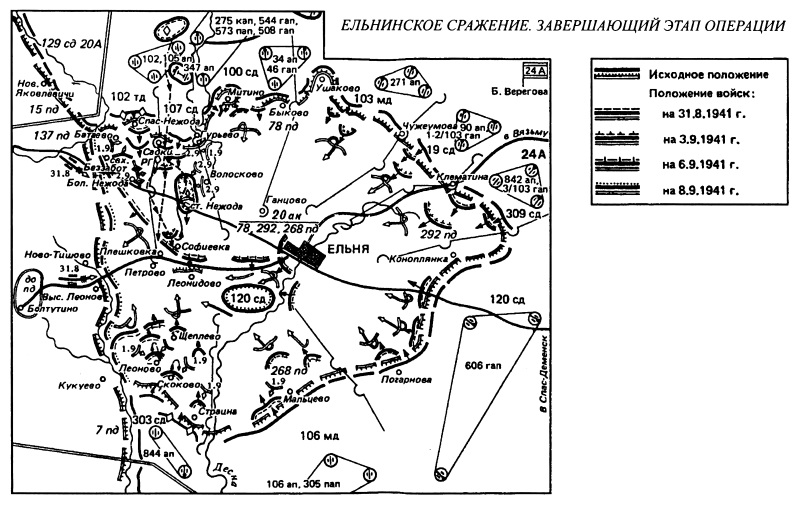 В ЖБД 2-й танковой группы можно прочитать: «Положение в боях вокруг Ельни особенно критическое. Корпус весь день подвергается атакам превосходящих сил с танками и артиллерией. Противник прорвался у Липни, и нейтрализовать прорыв нечем. Сильный артиллерийский огонь наносит войскам тяжелые потери. Вдобавок постоянные налеты вражеских бомбардировщиков. В результате артиллерийского обстрела эвакуация большинства раненых невозможна. У корпуса абсолютно нет резервов. Запасы снарядов настолько малы, что обстреливать вражескую артиллерию нечем. В последние несколько дней танковая бригада 10-й дивизии неподвижна, так как нет ни масла, ни бензина. Корпус еще может удерживать позиции, но лишь ценой большого кровопролития».