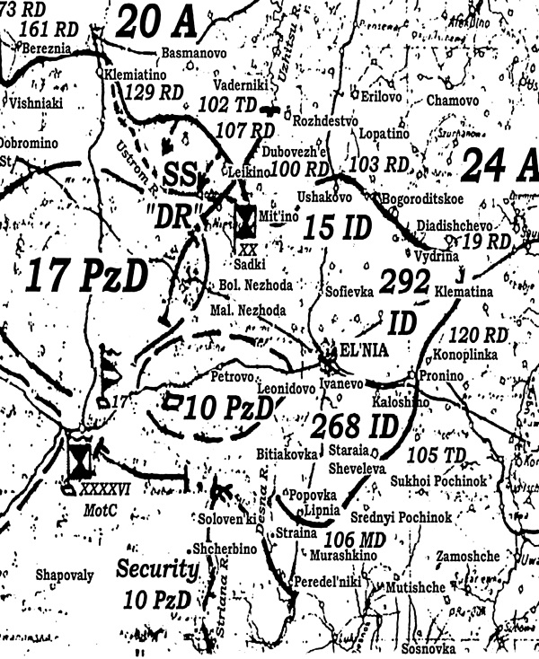Бои вокруг Ельни продолжались и далее, но уже без участия потрепанной дивизии «Дас Райх». Ее командир сообщает, что потери достигли 3000 человек, а в ротах остается не более 70 человек. Через два дня эсэсовцев охватывает уже настоящая паника: роты сократились до 20 человек! Поэтому от полного уничтожения дивизию спас лишь отвод в тыл. На фронте появляются одна за другой пехотные дивизии сначала ХХ, а потом и IX корпусов, но русские также перемалывают их одну за другой.