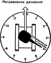 Для грубого целеуказания обычно используется система часового циферблата. Для этого угол горизонтального обстрела башенного орудия танка, равный 360°, подобно циферблату часов делится на двенадцать делений, причем деление, соответствующее цифре 12 на часовом циферблате, обозначает направление движения танка. На рисунке ствол пушки указывает на 4 часа.