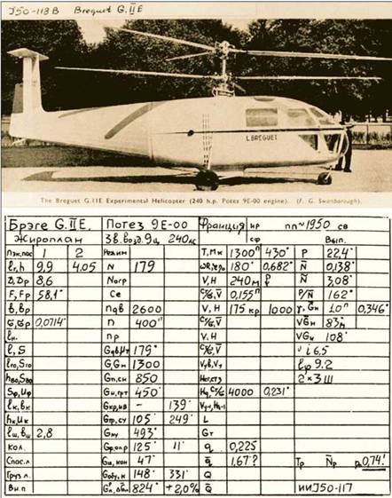 Карточка, посвященная французскому вертолету Breguet G.II E