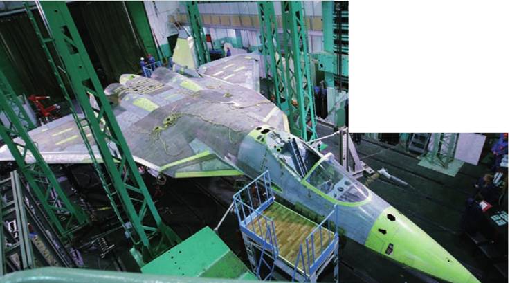 Эскизный проект ПАК ФА был завершен и предъявлен на рассмотрение комиссии заказчика осенью 2004 г., одобрившей его в декабре того же года. Следующий этап — технического проекта — удалось завершить в 2006 г., после чего начались рабочее проектирование и подготовка к постройке опытных образцов самолета. Собирать прототипы было решено на серийном заводе в Комсомольске-на-Амуре, на котором в дальнейшем предстояло развернуть серийное производство истребителей пятого поколения. При этом предусматривалось, что часть деталей и агрегатов будет изготавливаться другим предприятием компании «Сухой» — Новосибирским авиационным производственным объединением им. В.П. Чкалова. Изготовление деталей и панелей из композиционных материалов (а композитов в конструкции машины было необычно много) поручили уже хорошо знакомому «Сухому» по проекту С-37 Обнинскому НПП «Технология». Разработка и производство систем и покупных изделий для самолета велись широкой кооперацией предприятий промышленности — в целом той же, что задействована в других программах «Сухого» по самолетам семейства Су-27 (по силовой установке — это НПО «Сатурн» и УМПО, по системе управления — МНПК «Авионика», Павловский машиностроительный завод «Восход», НПК «ЭЛАРА», по радиолокационному прицельному комплексу — НИИП им. В.В. Тихомирова и ГРПЗ, по оптико-электронным прицельным системами — УОМЗ, по комплексу прицельно-навигационного оборудования, интегрированной вычислительной системе и системам индикации — РПКБ и концерн «Авионика», по системам вооружения — корпорация «Тактическое ракетное вооружение» и т. д.).