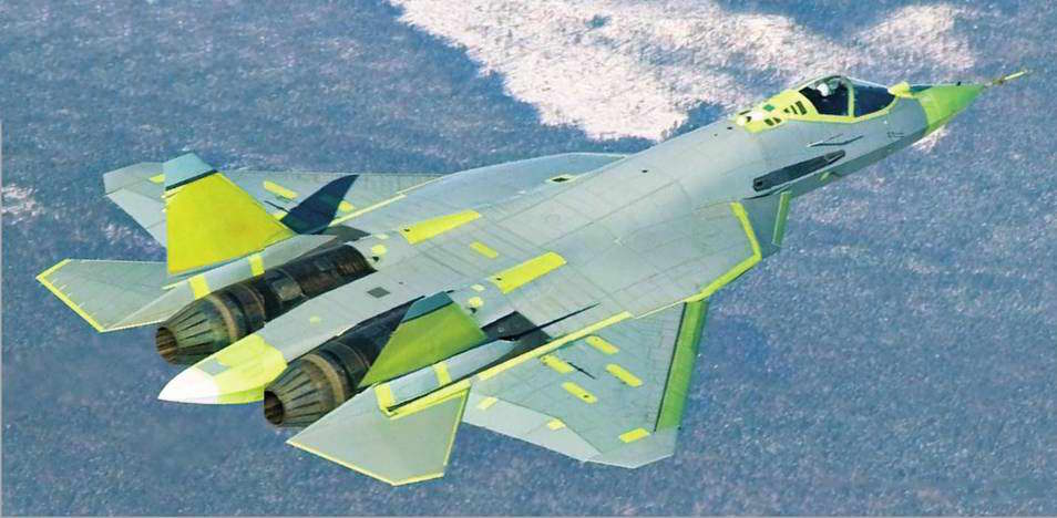Снижению радиолокационной заметности способствует уборка основного комплекта вооружения во внутренние отсеки, экранирование первых ступеней компрессоров двигателей за счет организации S-образных каналов воздухозаборников, а также широкое применение в конструкции самолета композиционных материалов. Как сообщил на встрече с журналистами 1 марта главный конструктор самолета Александр Давиденко, массовая доля композитов в конструкции машины достигает 25 %, а доля деталей из них в общей площади поверхности планера составляет около 70 %. Фотографии неокрашенного первого летного экземпляра и образца для статических испытаний свидетельствуют о том, что из композиционных материалов выполнена обшивка большей части верхней поверхности фюзеляжа, всей его носовой части, а также крыла и горизонтального оперения, большая часть механизации крыла, воздушные каналы и капоты двигателей, створки отсеков вооружения и шасси. Вероятно, композиты широко применяются и в силовых конструкциях фюзеляжа, крыла и оперения. По сути, если говорить о внешних поверхностях планера, из металлических сплавов выполнены только особо нагруженные элементы передних кромок наплыва крыла и его механизации, внешние стенки воздухозаборников, консоли вертикального оперения, нижняя поверхность фюзеляжа в районе вырезов под отсеки вооружения, силовые балки, к которым крепятся консоли крыла, горизонтального оперения и основные опоры шасси, а также хвостовой отсек фюзеляжа в районе реактивных сопел двигателей.