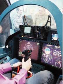 и новый широкоугольный индикатор на фоне лобового стекла. Кроме того, имеется несколько дополнительных небольших дисплеев и многофункциональных пультов управления. Основные органы управления самолетом, его вооружением и основными системами, нужными в бою, сосредоточены на центральной ручке управления и рычагах управления двигателями (концепция HOTAS).