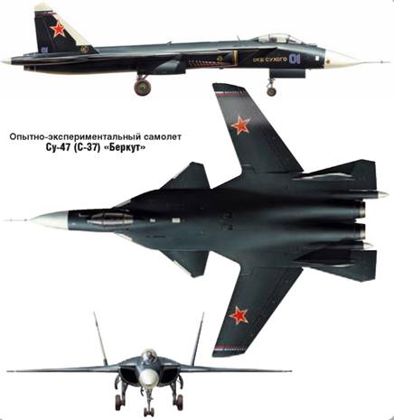 Опытно-экспериментальный самолет Су-47 (С-37) «Беркут» проходил летные испытания с 1997 г., а с 2004 г. используется как летающая лаборатория по программе ПАК ФА