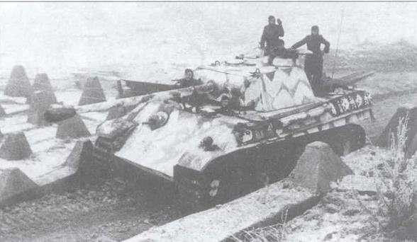 «Пантера» Ausf.G проходит через заграждения Берлинского укрепрайона. Февраль 1945 года