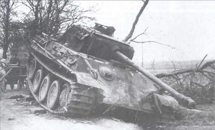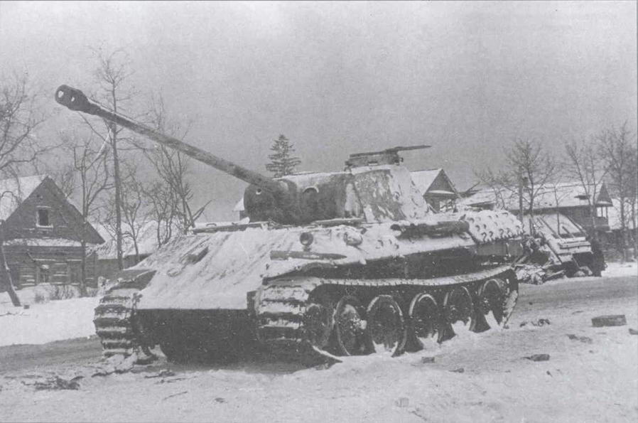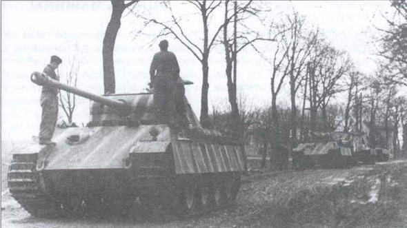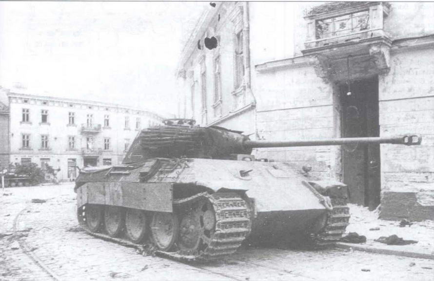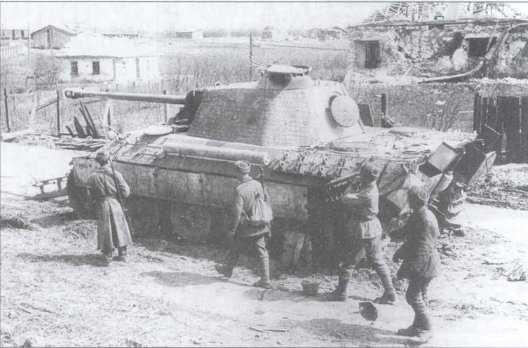 Следует отметить, что ценой огромного напряжения сил германская промышленность в 1945 году смогла дать фронту 507 «пантер». На 1 марта 1945 года в распоряжении германских танковых частей находилось 1763 линейных танка «Пантера», 169 командирских машин и 256 БРЭМ. Однако стремительно ухудшавшаяся ситуация на фронтах свела на нет все усилия промышленности. На 28 апреля в войсках оставалось следующее количество боевых машин: Восточный фронт — 446 (из них только 288 боеготовых), Западный фронт — 29 (24 боеготовых), Италия — 24 (23 боеготовых). А вот как обстояло дело в различных танковых соединениях. В знаменитой Учебной танковой дивизии, находившейся в тот момент на Западном фронте, осталось только семь «пантер». 26-я танковая дивизия в Италии располагала 24 танками этого типа. В 10-й танковой дивизии СС «Фрундсберг», действовавшей на центральном участке Восточного фронта, имелось 34 «пантеры», и она считалась одной из наиболее боеспособных. Значительно хуже обстояло дело на южном участке, где в составе трех танковых дивизий СС «Лейбштандарт Адольф Гитлер», «Рейх» и «Мертвая голова» осталось только 23 «пантеры».