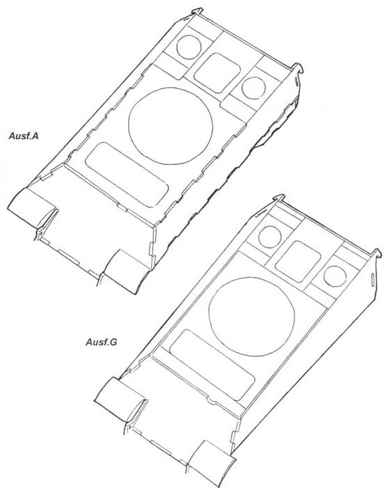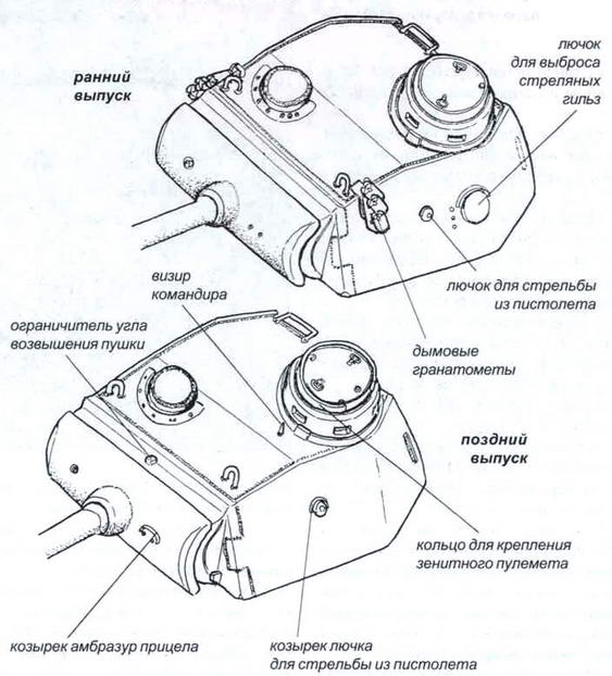 Командирские башенки танков: Ausf.D — вверху и Ausf.A и G — внизу
