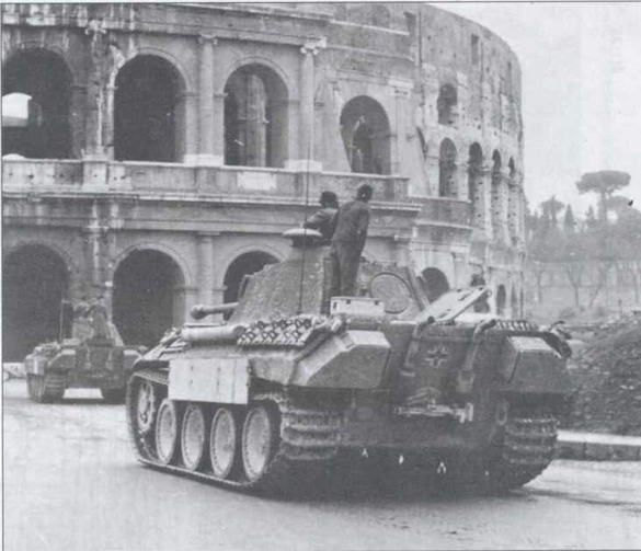 «Пантеры» Ausf.D позднего выпуска в Риме на фоне Колизея. 1943 год