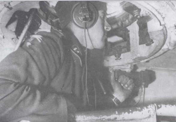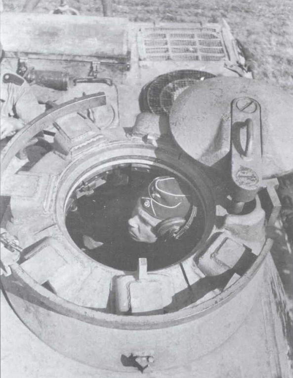 Член экипажа танка Ausf.G ведет наблюдение за воздухом. Нормандия, июнь 1944 года. В этот период, если верить горькой шутке немецких солдат, у них стал вырабатываться так называемый «немецкий взгляд», то есть взгляд, устремленный в небо в ожидании очередной атаки английских или американских истребителей- бомбардировщиков