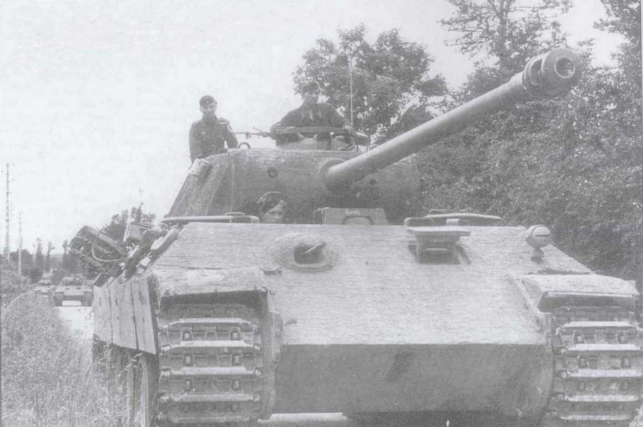 Колонна танков «Пантера» Ausf.A из состава Учебной танковой дивизии Вермахта на подходе к району боевых действий. Нормандия, июнь 1944 года