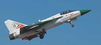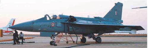 Построенный с широким использованием композиционных материалов по схеме «бесхвостка» с треугольным крылом размахом всего 8,2 м, «Теджас» имеет длину 13,2 м и высоту 4,4 м. Пустой самолет весит лишь 5500 кг, а его взлетная масса без подвесок составляет 8500 кг. В то же время он может принимать на свои восемь точек подвески «более 4000 кг» различного вооружения – российского, западного и собственного индийского производства. Например, на этом салоне LCA демонстрировался с ракетами Р-73Э и «Астра». Первая из них поставляется из России, вторая разрабатывается самостоятельно в Индии (подробнее о ней – см. отдельную заметку в этой рубрике). Самолет может развивать скорость, соответствующую числу М=1,6 и достигать высоты 15 км. Максимальная дальность его полета достигает 2000 км, продолжительность – 2,5 ч. «Теджас» имеет цифровую электродистанционную систему управления, «стеклянную» кабину экипажа и открытую архитектуру построения БРЭО.
