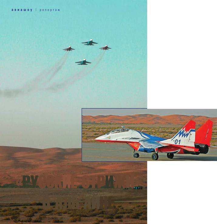 Вверху слева: командир «Стрижей» Николай Дятел выруливает на своей «спарке» с №01 на старт для очередного показательного полета в Аль Айне