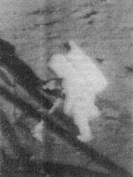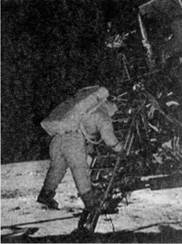 Выбирался он из люка LM по площадке к трапу почти 10 минут, на самом трапе его движения схожи с движениями кошки, спускающейся с сухого крыльца на мокрую лужайку. А следующие четыре минуты удивительно напоминают первые шаги земного ребенка, впервые "вставшего на ноги". Посудите сами: