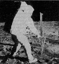 Попрыгав, стали обмениваться первыми впечатлениями. Олдрин заметил, что он еще ничего не сделал, а скафандр его уже слегка выпачкан пылью, которая, видимо, осела на трап LM во время посадки. Оба сразу отметили, что ранцевая система за плечами почти не стесняет движения, благодаря мягкой и эластичной ткани скафандров.