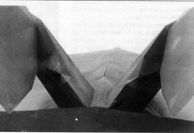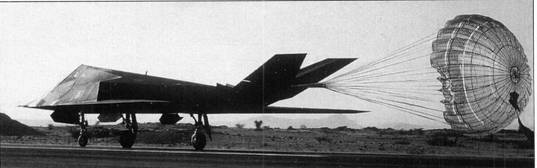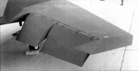 Практически все грани «фасеточного» планера F-117A обклеены лентами шириной приблизительно 10 см, выполненными, очевидно, из радиопог- лощающего материала. Ряд участков обшивки (в частности, поворотные консоли хвостового оперения) имеют и более широкие листы обклейки. Поверх всех этих лент и листов, как и на остальную поверхность планера, нанесена матовая черная краска, обеспечивающая оптическую маскировку ночью (когда, в основном, и должны работать «Найтхоки»),
