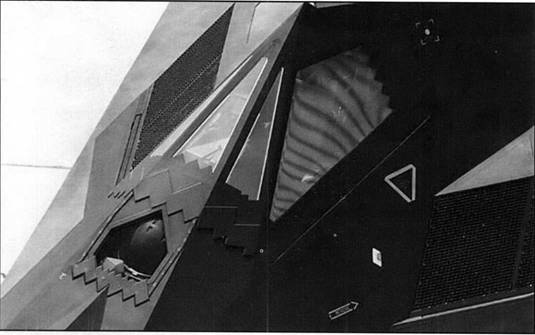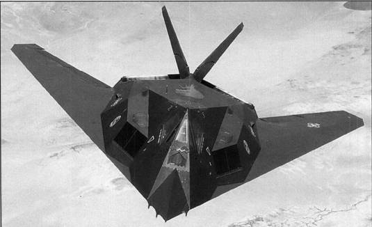 Обычно наземные поисковые РЛС облучают ЛА под углами, лежащими в пределах 30 град вверх и вниз от горизонтальной плоскости, вследствие чего большинство поверхностей самолета F-117А наклонено под углом более 30 град от вертикали для отражения радиолокационных лучей вверх и вниз от направления на облучающую РЛС. Проектировщики говорят и о своем стремлении обеспечить малую вероятность обнаружения F-117А с верхней полусферы самолетами ДРЛО, но это требование явно занимало подчиненное положение.