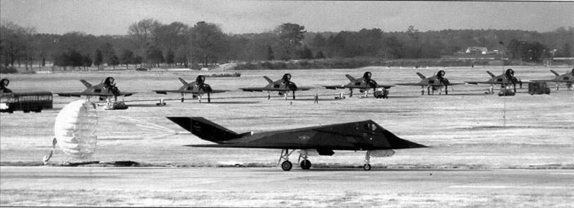 Численность самолетов F-117А, развернутых в зоне Персидского залива (42 единицы), составила лишь 2,5% от общего числа ЛА, направленных в 1 990 г. для участия в этой войне. Тем не менее в первые 24 часа войны согласно заданию они должны были поразить 31% от всех целей.