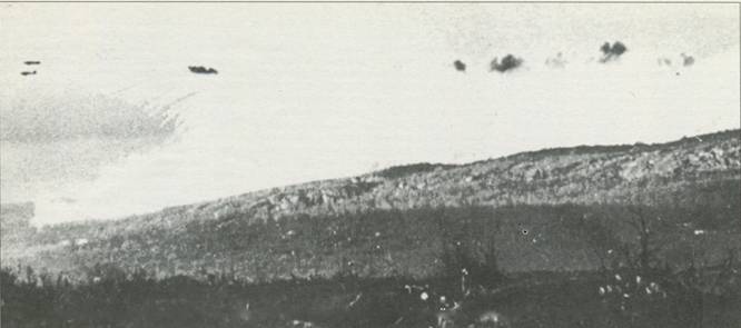Удар с воздуха гранулиованным фосфором наносят советские самоловы. Кольс^ртй полуостров, лето 1941 г.