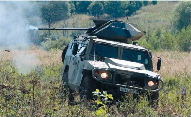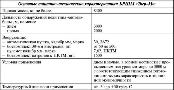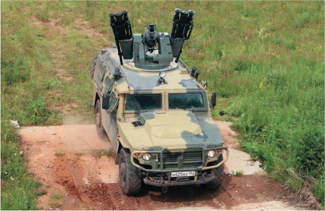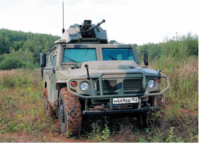 Наконец еще одна интересная модификация «Тигра» — бронированный автомобиль «Тигр-М» с боевым модулем, унифицированным по конструкции и системе управления огнем (СУО) с автоматическим дистанционно управляемым боевым модулем (БМДУ) от автоматического роботизированного комплекса «Уран-9». В этом исполнении машина получила рабочее наименование «Тигр-М» БРШМ (бронированная разведывательно-штурмовая машина).